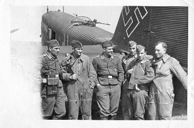 Eine Besatzung der Kgr.z.b.V.12 vor ihrer Ju 52; der Abflug an die holländische Grenze steht bevor - allerdings hat Holland bereits kapituliert. Das mag die entspannten Gesichter erklären.